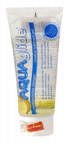 Лубрикант AQUAGLIDE BANANE на водной основе для вагинального секса. Возможно использование с презервативами, изделиями из латекса, секс игрушками. Имеет аромат банана. Объем - 100 мл.