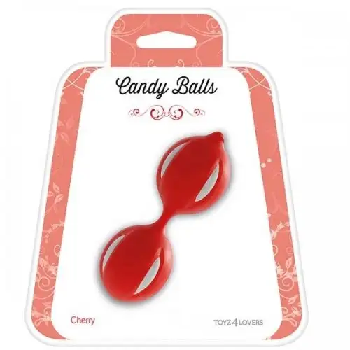 Вагинальные шарики CANDY BALLS CHERRY RED. Имеют смещенный центр тяжести. Приятное на ощупь покрытие. Диаметр шариков - 3,5 см, длина связки - 10 см.