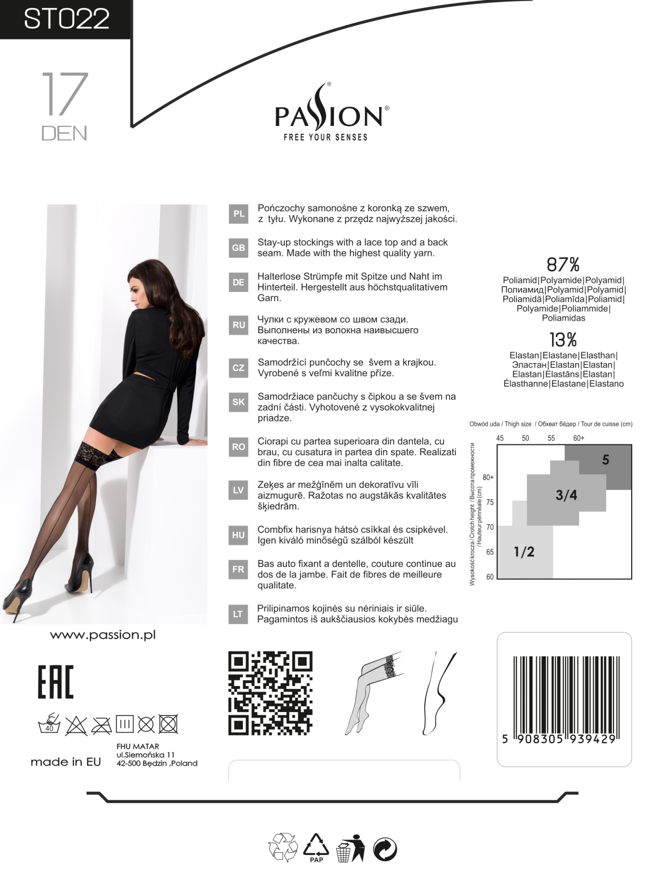 Чулки Passion ST022 nero выпускаются в одном размере, который подходит большинству женщин, поэтому независимо от вашей фигуры или размера эти чулки подойдут идеально! Они также поставляются с удобной сумкой для хранения, поэтому их можно хранить в безопасности, когда они не используются, что делает их идеальными и для путешествий!