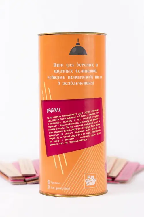 Вам надоели однообразные встречи в компании друзей? Хочется повеселиться и посмеяться от души? Купите эротическую игру «Правда или дело» (Для веселой компании), которая не только поднимет настроение, но и поможет развлечься. Вам не придется скучать с первых мгновений игры. Такая забава подойдет не только для домашней обстановки. Сидя в кафе, в баре, ваша компания сможет удивить окружающих легкостью общения и веселым смехом, когда дело коснется выполнения какого-либо выпавшего действия.