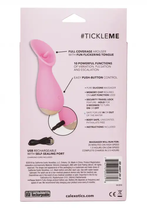 CalExotics Slay TickleMe – лучший стимулятор клитора! Эта инновационная секс-игрушка предназначена для того, чтобы доставлять вам интенсивное удовольствие и удовлетворение. Благодаря своей уникальной форме и мощному двигателю он обязательно доставит вам новые высоты удовольствия.